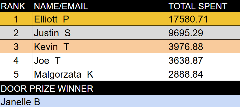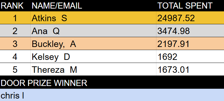 Instead of doing our free raffles in November and December we decided to do an awesome monthly program! Each month the top 3 buyers will win amazing, totally free prizes! Plus, anyone who orders during the month is automatically entered to win the door prize! Here are the prizes for this month followed by the current winners:
